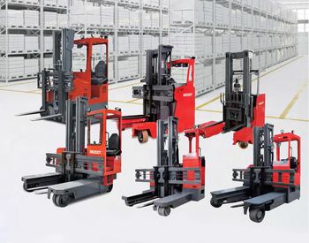 Oturmuş sürüş palet istifleyici 6M kaldırma yüksekliği ulaşmak kamyon elektrikli 360 derece çok yönlü karşı forklift